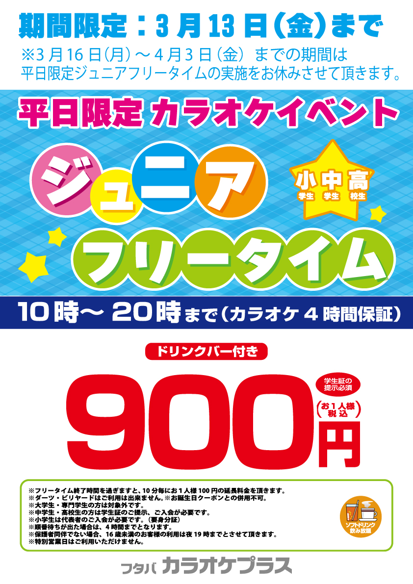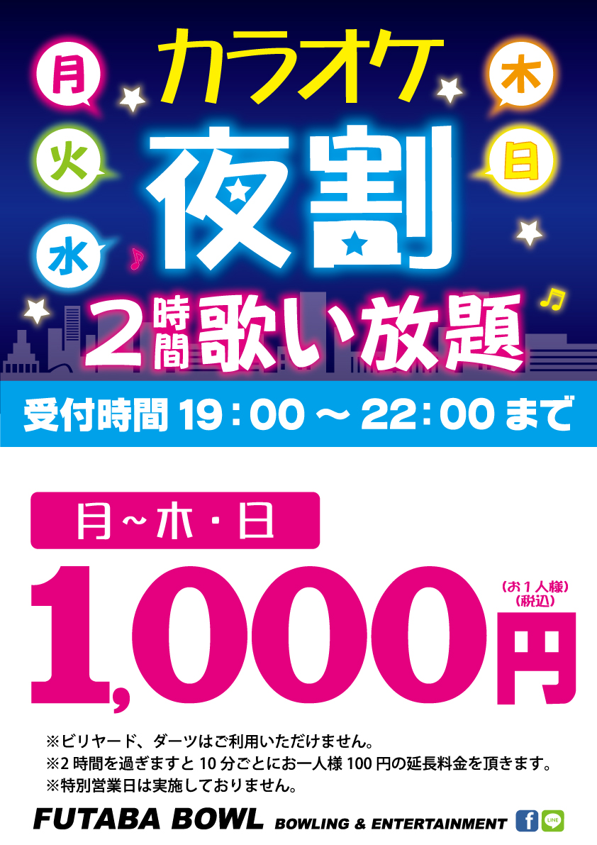 ※保護者同伴でない16歳未満のお客様のご利用は夜19時までとさせて頂きます。