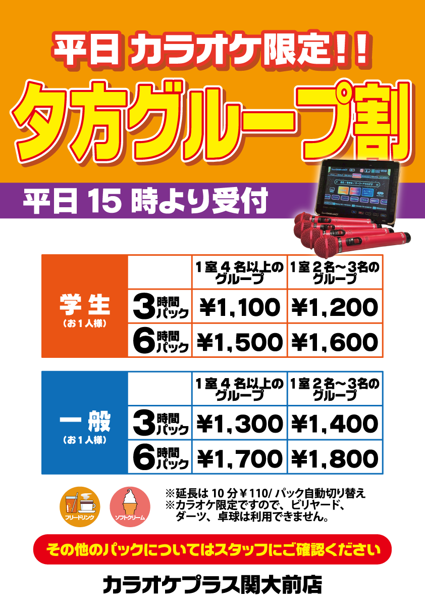 ※小学生(4年生以上)のお子様グループが利用できるコンテンツは、カラオケ・ 卓球 とさせていただきます。